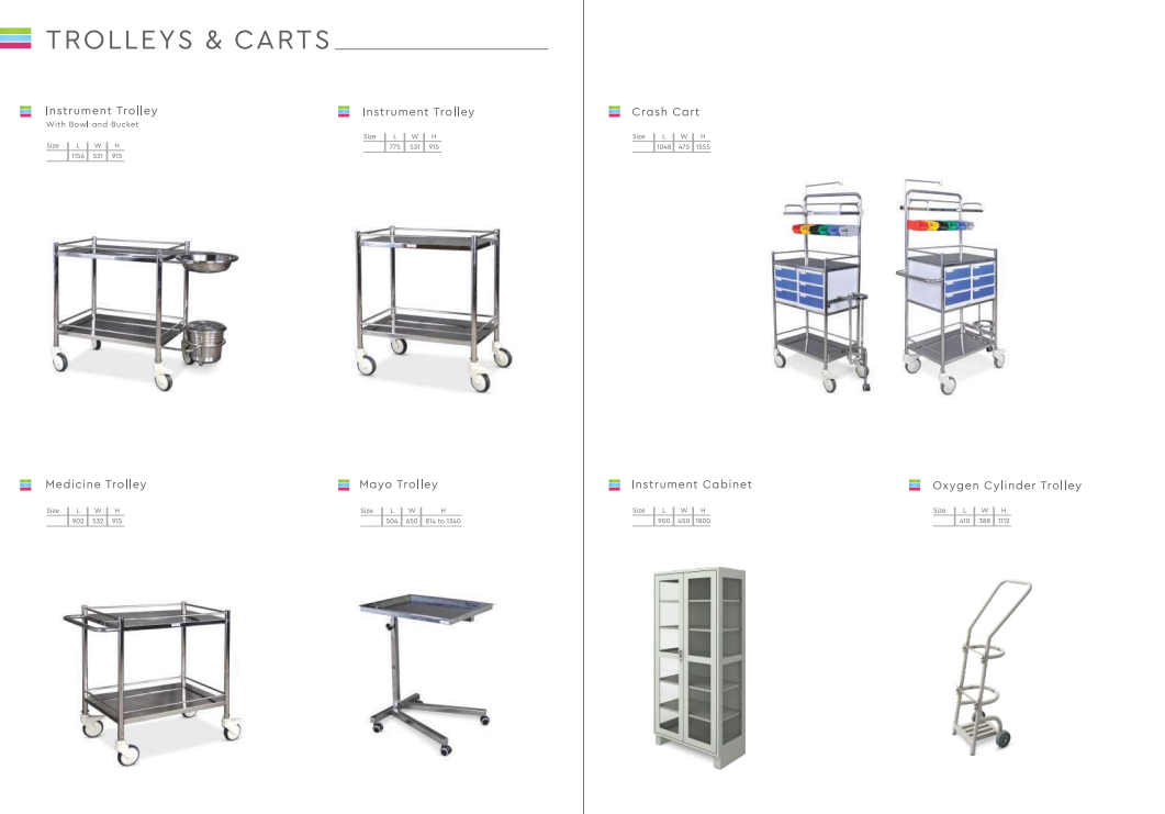 The range of SS hospital Trolleys and Cart is an extension to the existing medical facility product. Emergency Crash Cart is a heavy duty, sturdy and corrosion resistant trolley with an application in clinics and hospitals.