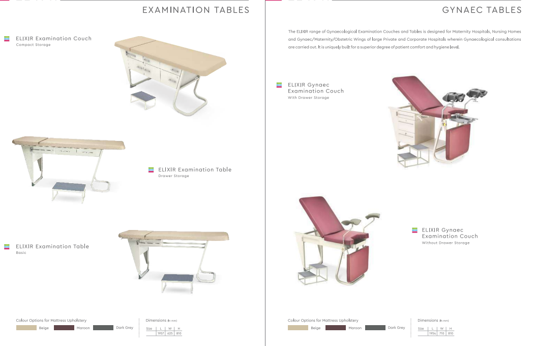 Consulting spaces are expected to be self-sufficient and consume small footprint, offers flexibility in space optimization for care giver and safer healing experience for the patient. This Examination table has a light construction and has been ergonomically designed for OPD spaces.