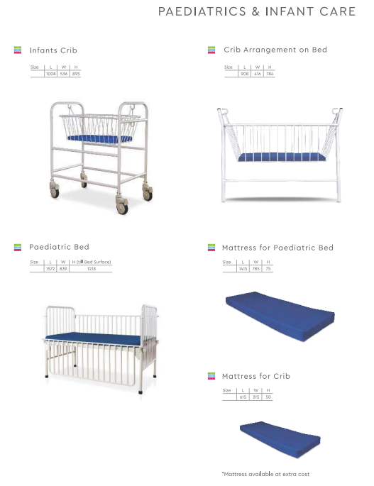 Paediatric bed is built to promise: patient comfort, caregiver convenience, unparalleled safety, ease of mobility and ease of maintenance. Additionally, they incorporate a wide range of value-added features, compatibility with multiple accessories, elegant aesthetics and flexibly designed to match the needs of intensive care.