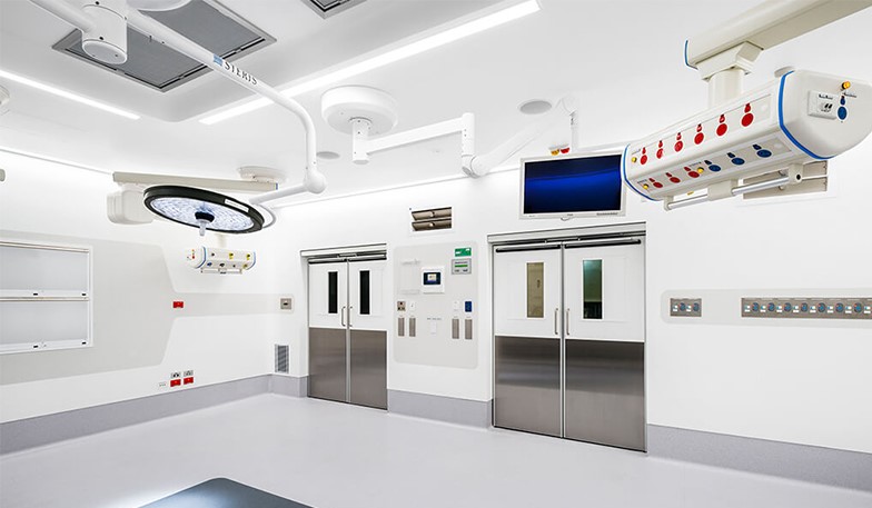 Modular Operation Theater (OT)- Compliant with NABH & international OT standards Seamless HPL/SS wall panels with antimicrobial finishes, Hermetically sealed OT doors, epoxy or vinyl flooring, Laminar air flow (LAF) ceilings with HEPA filtration, View panels, pressure relief dampers, and cleanroom lighting, Integration of surgical lights, pendants, OT tables, and control panels